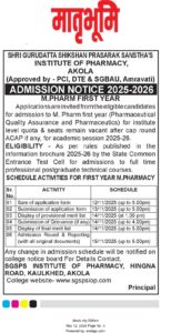 | M. Pharm (Pharmaceutics) | 2 year (4 Semester) |